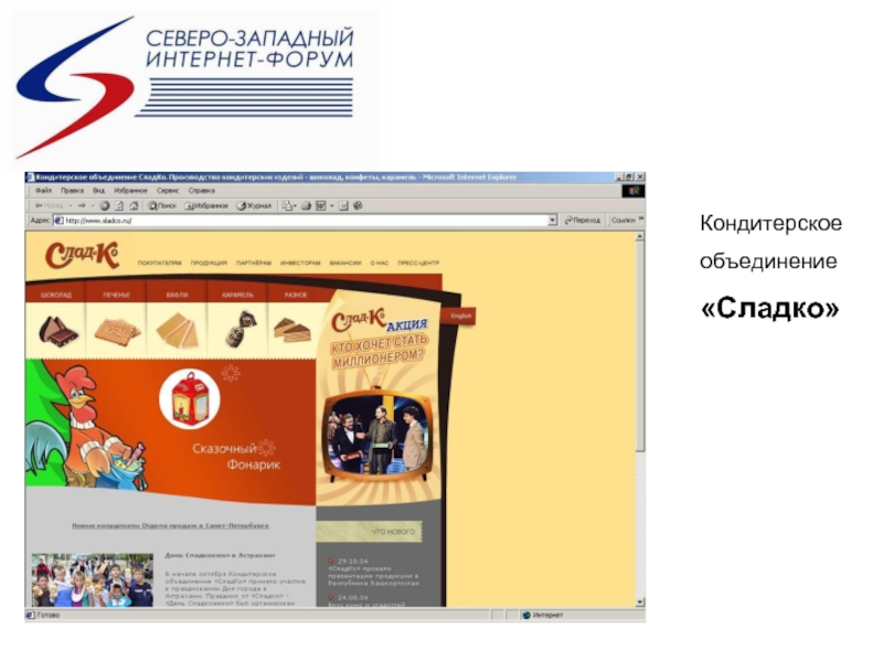 Номинация: Деловой сайт холдинг RBI Кондитерское объединение Сладко презентация