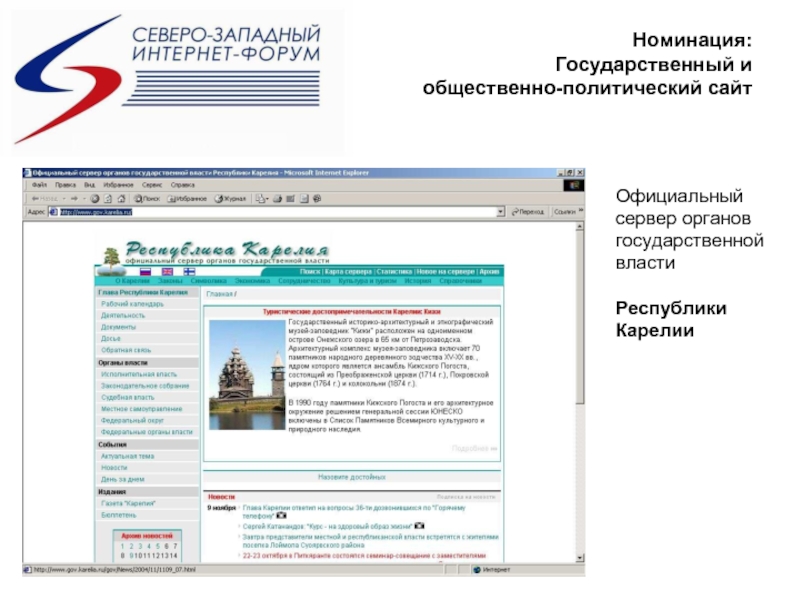 Слайд 11Номинация: Государственный и общественно-политический сайт