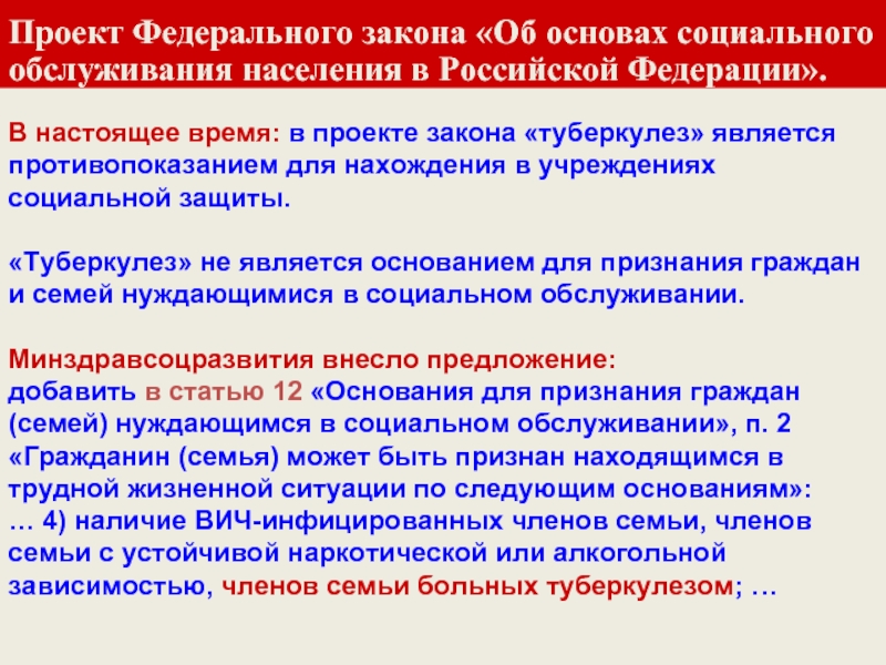 Проект Федерального закона «Об основах социального обслуживания населения в Российской Федерации».