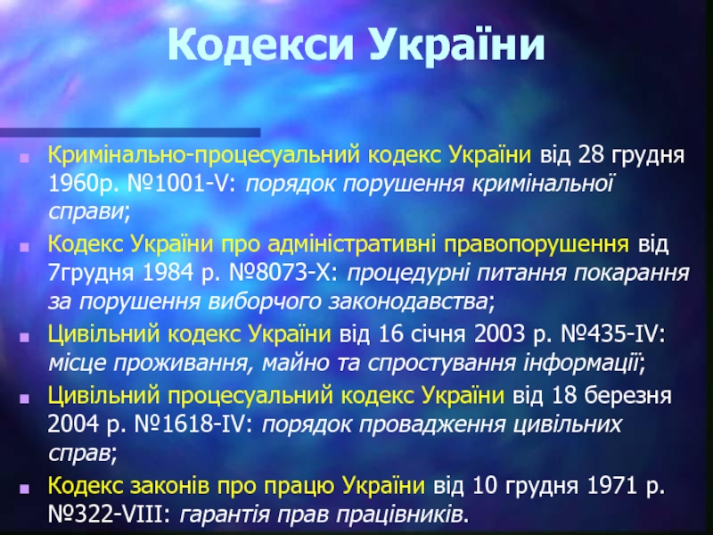 Слайд 5Кодекси України