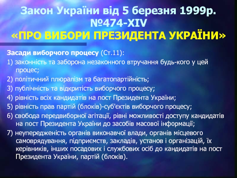 Слайд 14Закон України від 5 березня 1999 р. №474-XIV