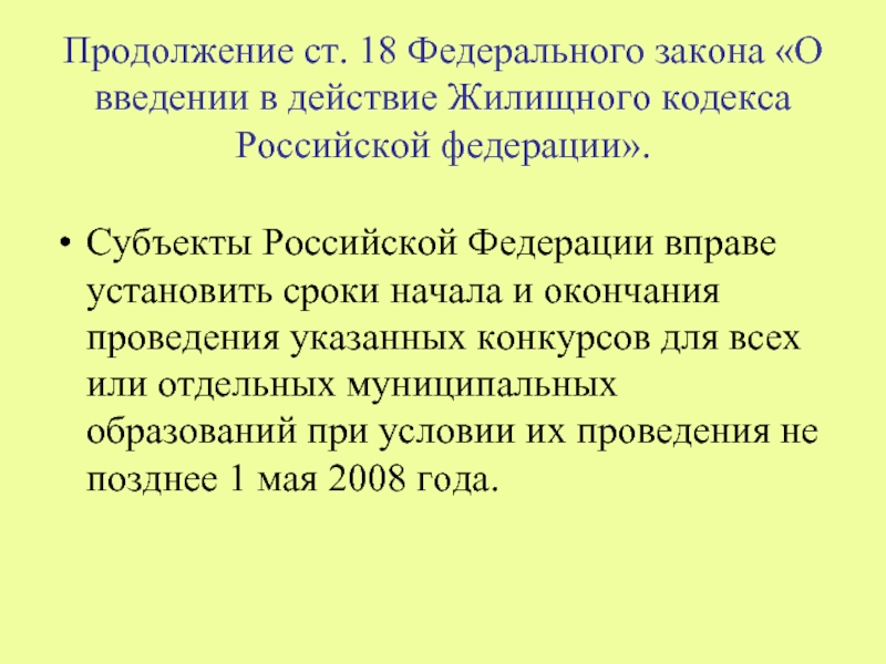 Слайд 13Статья 18 Федерального закона «О введении в действие Жилищного кодекса Российской