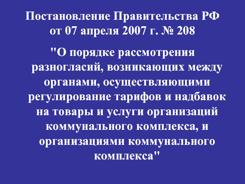 субъектов РФ, осуществляющими регулирование тарифов на товары и услуги организаций коммунального комплекса, органами местного самоуправления, осуществляющими регулирование тарифов и надбавок организаций коммунального комплекса, и организациями коммунального комплекса в отношении тарифов и надбавок, установление которых предусмотрено Федеральным законом "Об основах регулирования тарифов организаций коммунального комплекса"