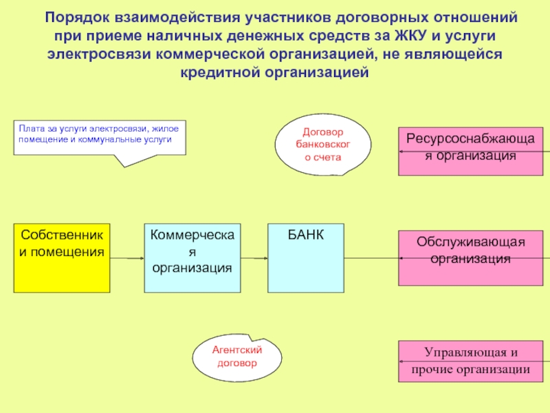 ЖКУ и услуги электросвязи коммерческой организацией, не являющейся кредитной организацией