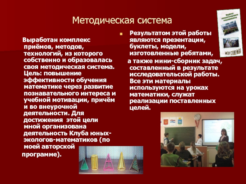 а также мини-сборник задач, составленный в результате исследовательской работы. Все эти материалы используются на уроках математики, служат реализации поставленных целей.