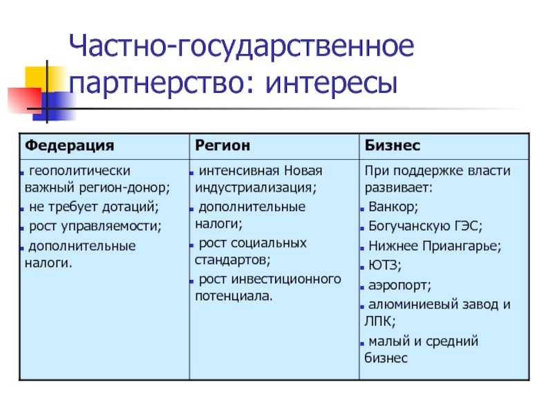 Концентрация усилий бизнеса и власти на развитии базовых регионов c внятными преимуществами