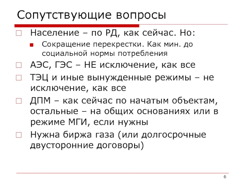 Отказ от искусственных механизмов, сдерживающих нормальное развитие торговли э/э с мощностью и СД: