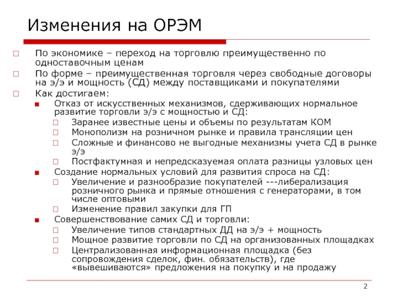 Слайд 3Изменения на ОРЭМ – рынок э/э