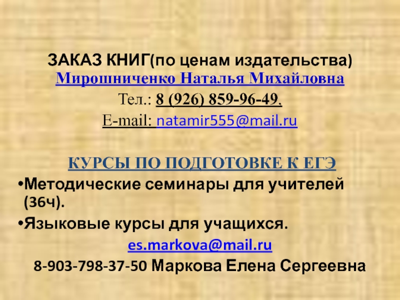 Если не удалось найти и скачать презентацию, Вы можете заказать его на нашем сайте. Мы постараемся найти нужный Вам материал и отправим по электронной почте. Не стесняйтесь обращаться к нам, если у вас возникли вопросы или пожелания: