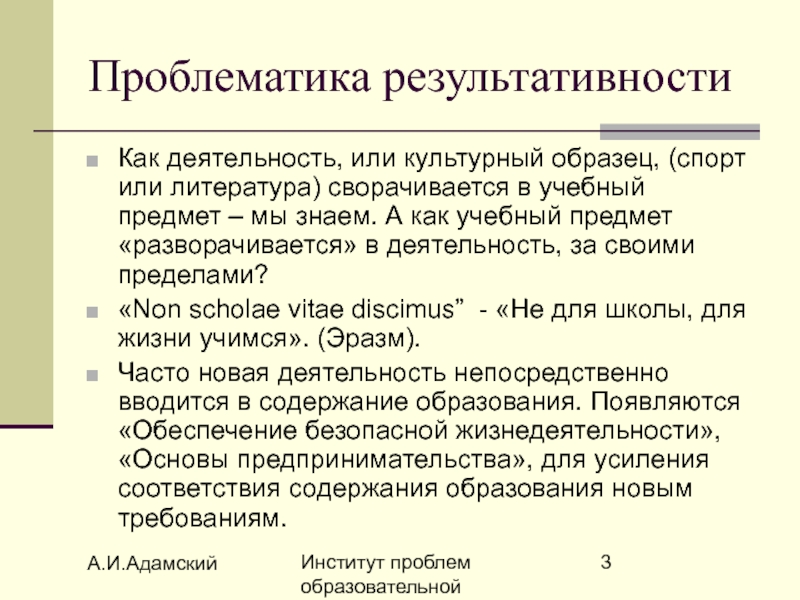 Проблематика результативности