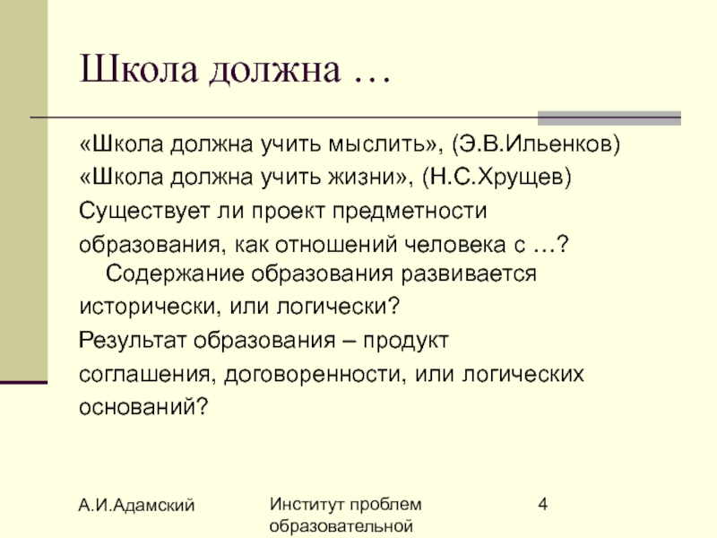 «Школа должна учить мыслить», (Э.В.Ильенков)