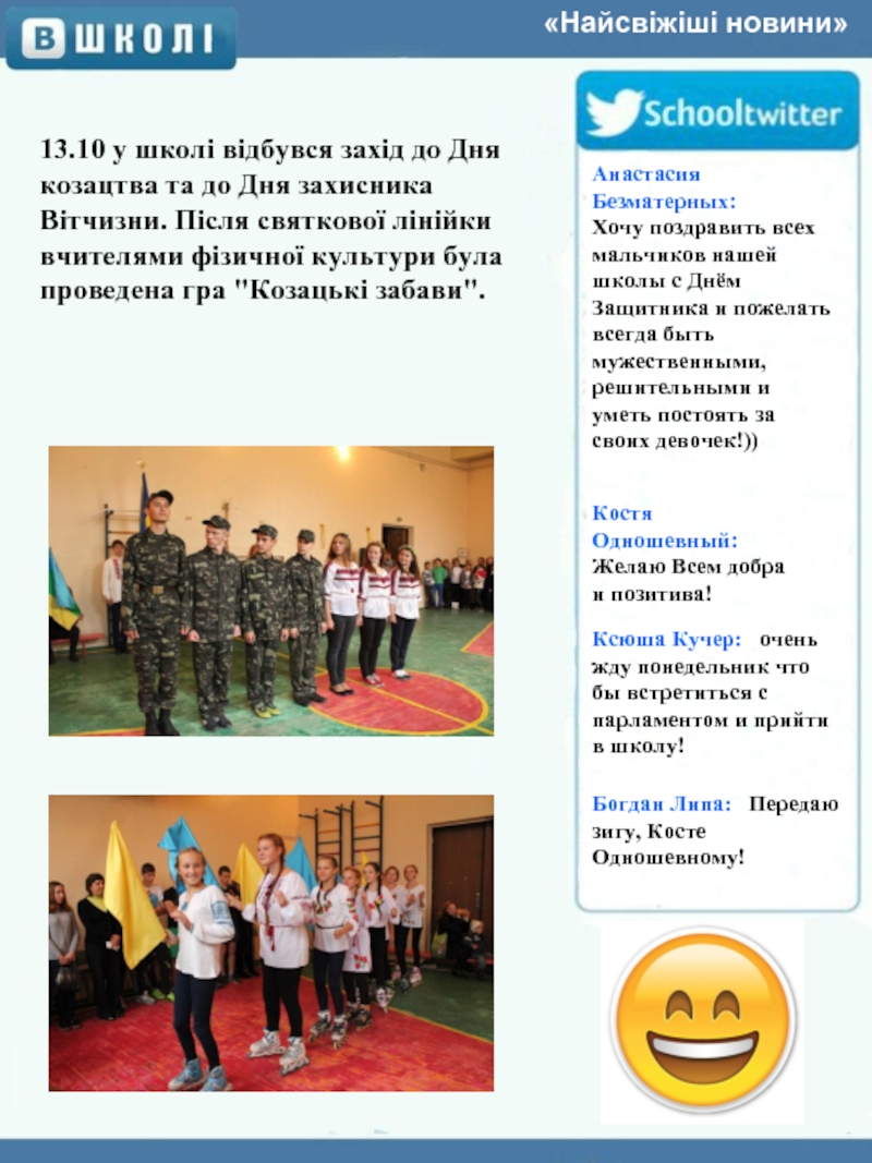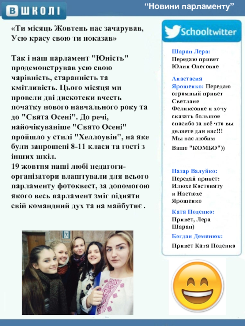 Читайте у наступному випуску шкільної газети “Вшколі” :