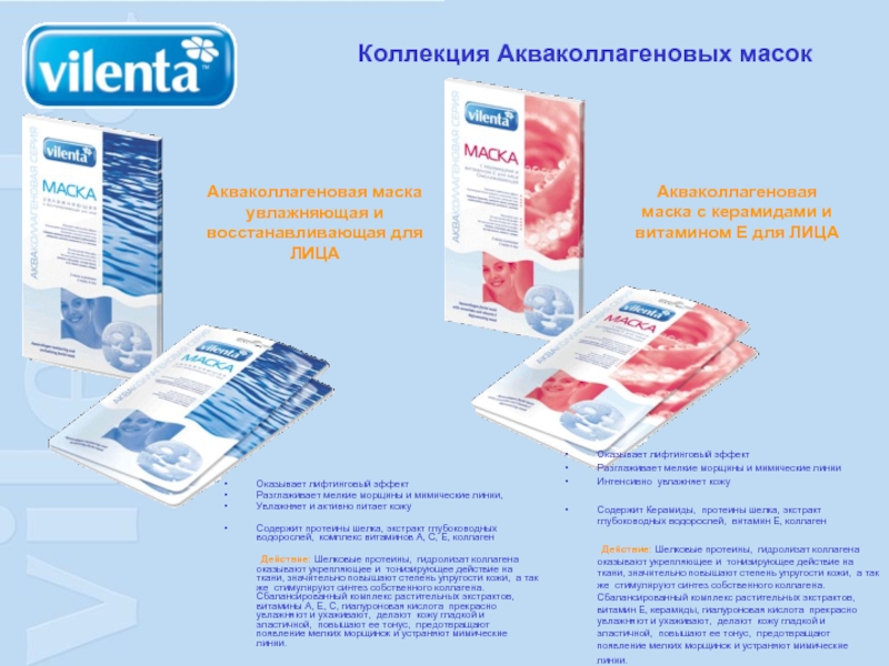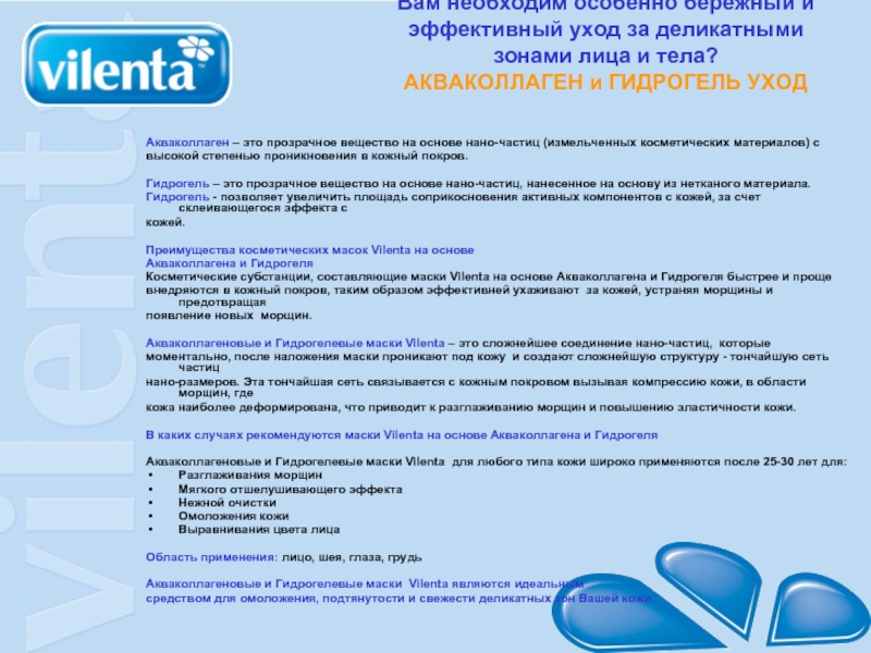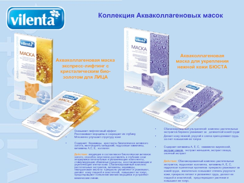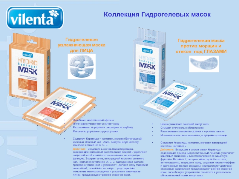 Косметические субстанции, составляющие маски Vilenta на основе Акваколлагена и Гидрогеля быстрее и проще