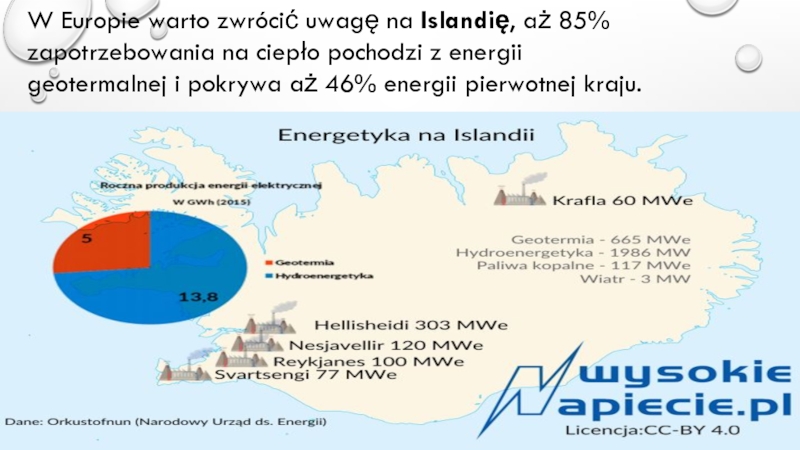 Слайд 18W Europie warto zwrócić uwagę na Islandię, aż 85% zapotrzebowania na