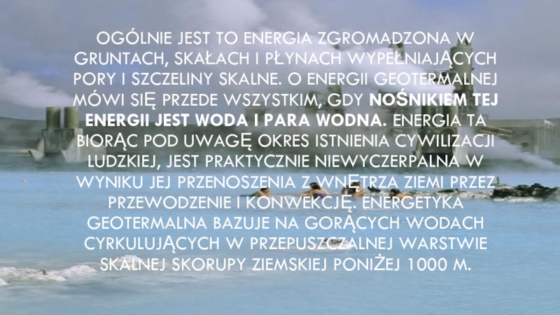 Слайд 4OGÓLNIE JEST TO ENERGIA ZGROMADZONA W GRUNTACH, SKAŁACH I PŁYNACH WYPEŁNIAJĄCYCH