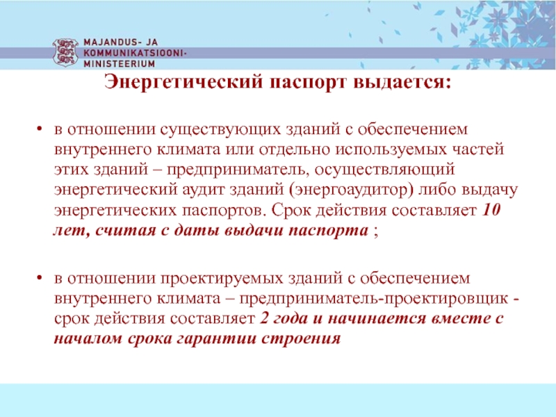 Основные требования директивы по эффективному использованию энергии (2/2)