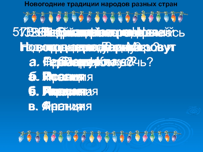 5. В какой стране на Новый год приходят Дед Мороз и Снегурочка?