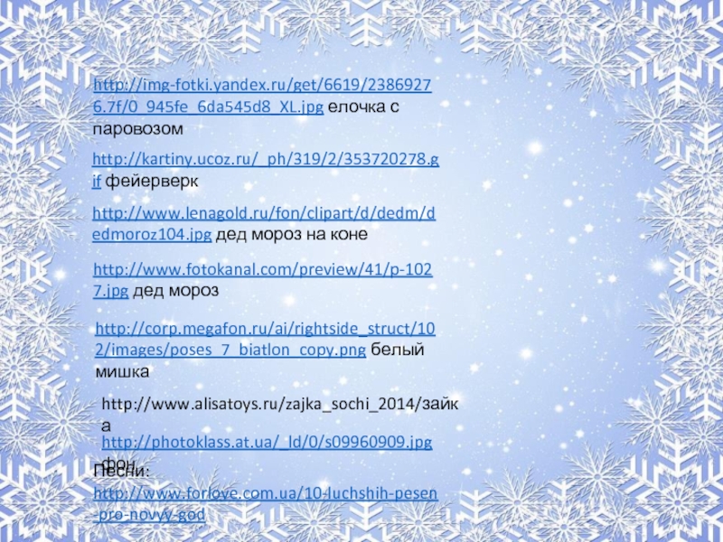 Песни: http://www.forlove.com.ua/10-luchshih-pesen-pro-novyy-god