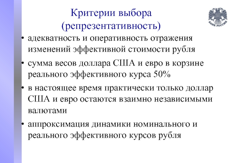 адекватность и оперативность отражения изменений эффективной стоимости рубля