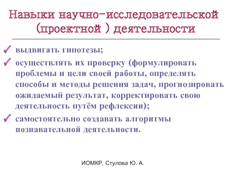 Навыки научно-исследовательской (проектной) деятельности
