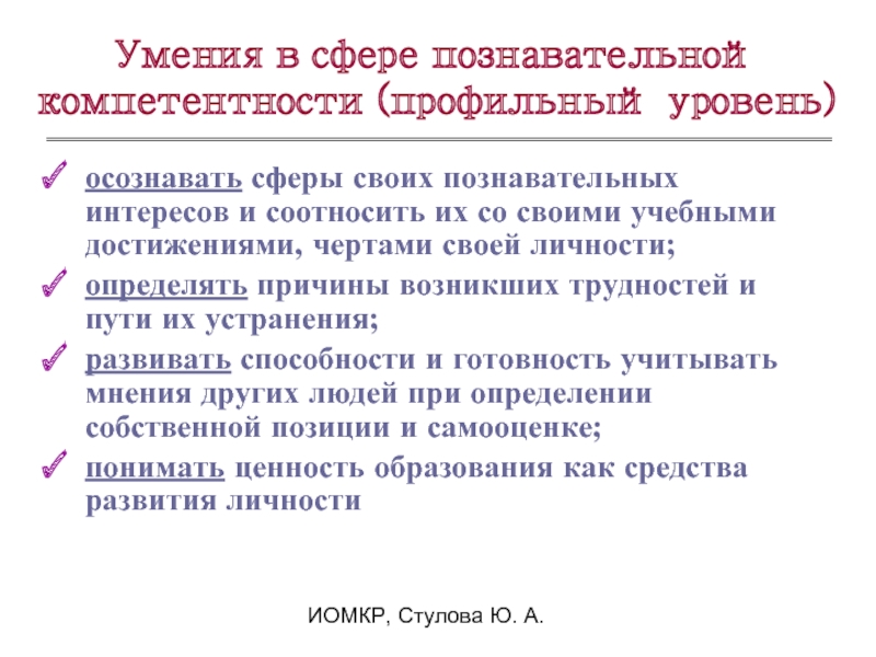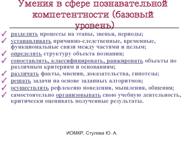 Умения в сфере познавательной компетентности