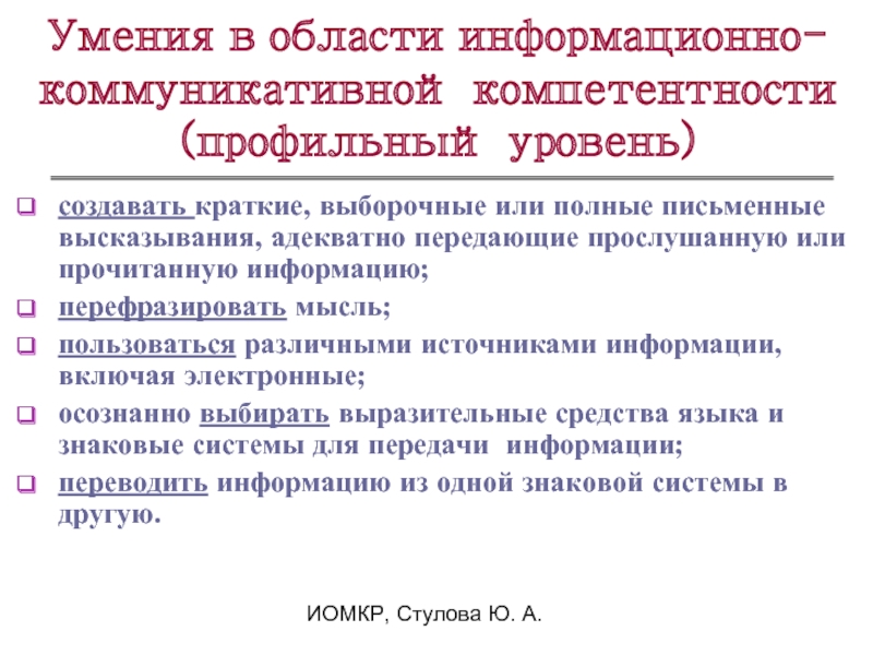 Умения в области информационно-коммуникативной компетентности