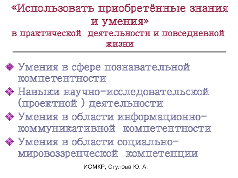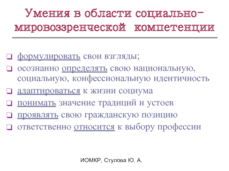Умения в области социально-мировоззренческой компетенции