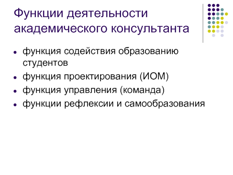 Слайд 23Функции деятельности академического консультанта