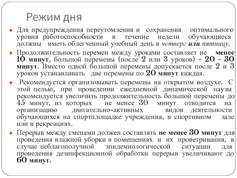 Слайд 8Гигиенические требования к режиму образовательного процесса