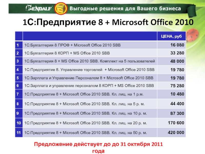Пользователям предыдущих версий программ «1С:Предприятие», которые планируют переходить на "1С:Предприятие 8» (апгрейд) также предоставляется возможность купить Microsoft Office 2010 по такой же специальной льготной цене
