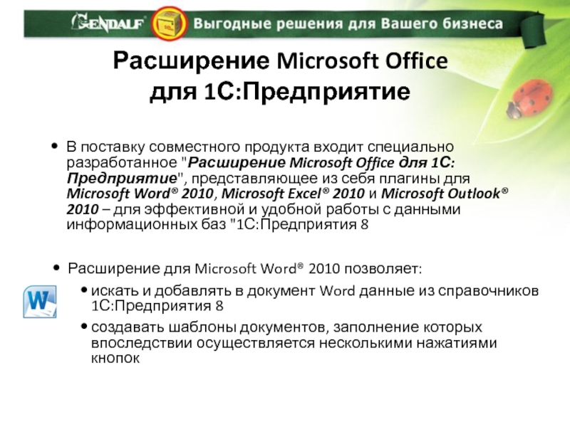 Затем производится переход с "1С:Предприятия 8" на совместный продукт "1С:Предприятие +Microsoft Office 2010 для малого бизнеса"