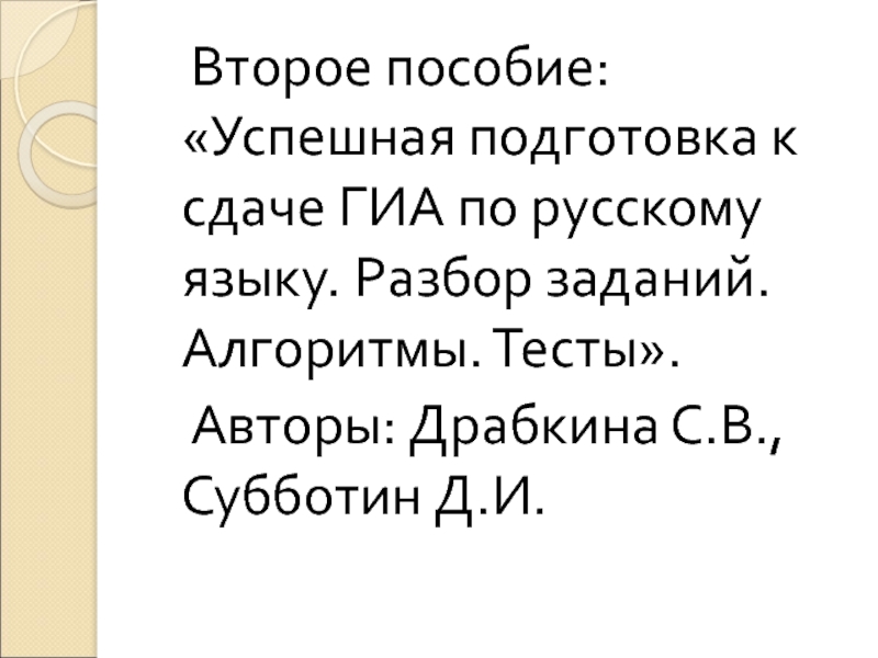 Слайд 19 Второе пособие: «Успешная подготовка к сдаче ГИА по русскому языку. Разбор