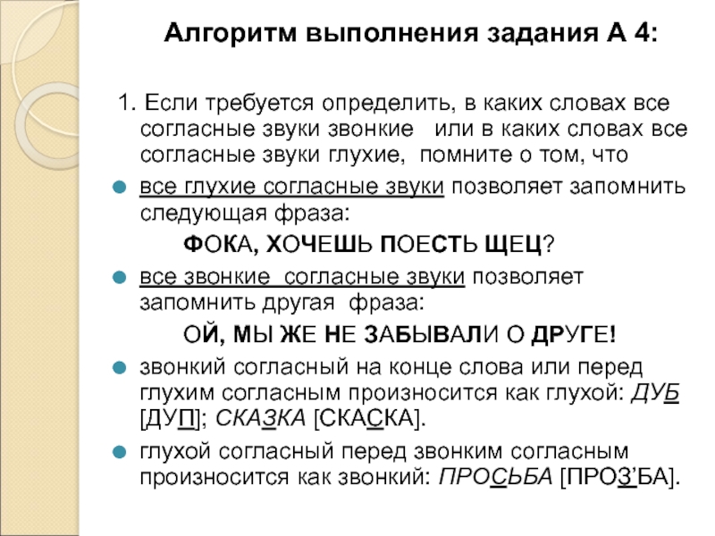 определить, в каких словах все согласные звуки звонкие или в каких словах все согласные звуки глухие, помните о том, что