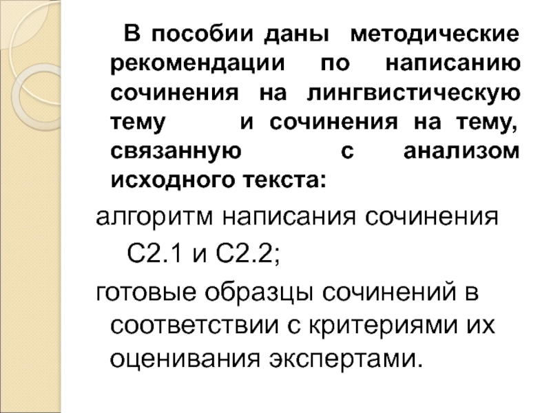 Слайд 29 В пособии даны методические рекомендации по написанию сочинения