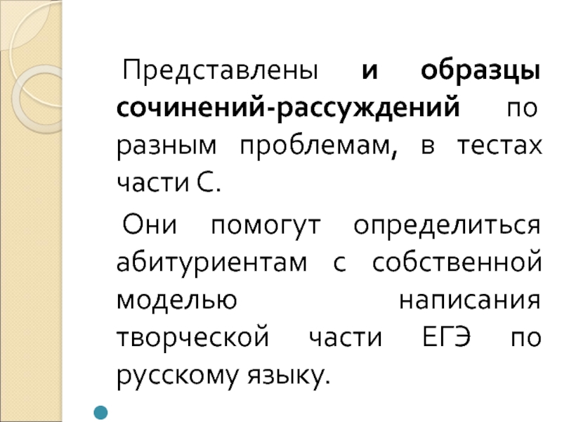 Представлены и образцы сочинений-рассуждений по разным проблемам, в тестах части С.