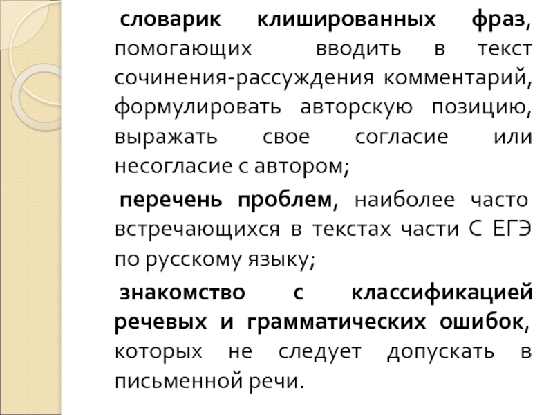перечень проблем, наиболее часто встречающихся в текстах части С ЕГЭ по русскому языку;