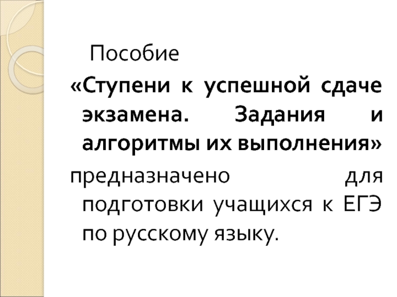 «Ступени к успешной сдаче экзамена. Задания и алгоритмы их выполнения»