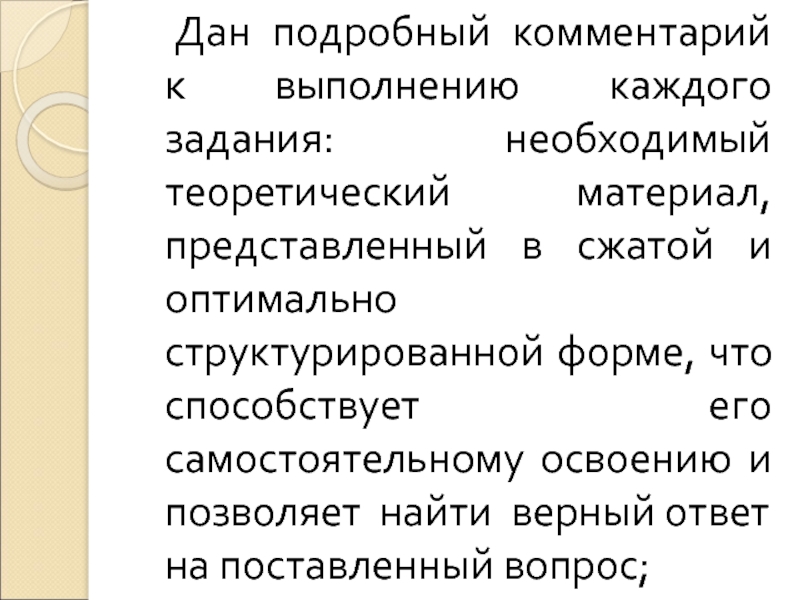 Слайд 6 Дан подробный комментарий к выполнению каждого задания: необходимый теоретический материал, представленный