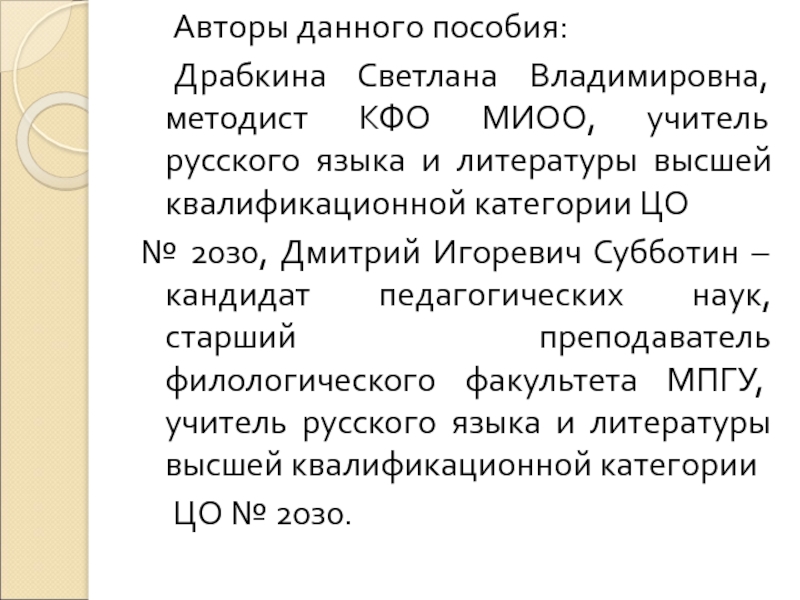 № 20з0, Дмитрий Игоревич Субботин – кандидат педагогических наук, старший преподаватель филологического факультета МПГУ, учитель русского языка и литературы высшей квалификационной категории