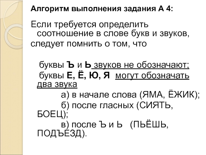 в слове может быть всегда мягкий непарный звук-невидимка [Й’], обозначаемый на письме при помощи букв Е, Ё, Ю, Я, если они идут в начале слова (ЯМА, ЁЖИК); после гласных (СИЯТЬ, БОЕЦ); после Ъ и Ь (ПЬЁШЬ, ПОДЪЕЗД).