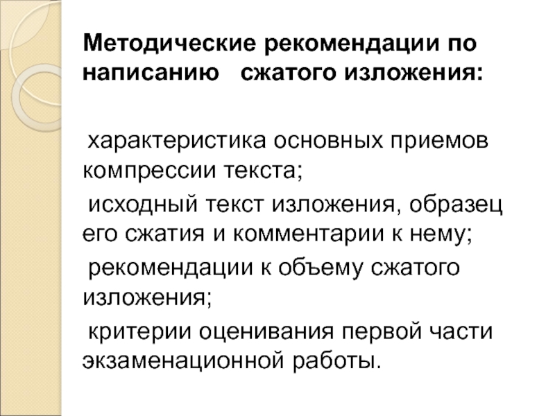 Слайд 30 Методические рекомендации по написанию сжатого изложения: