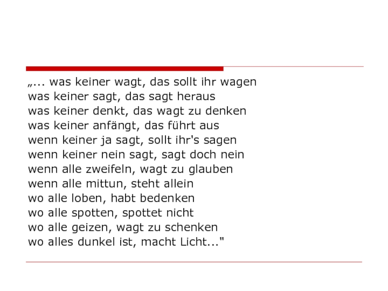 Слайд 39„... was keiner wagt, das sollt ihr wagen