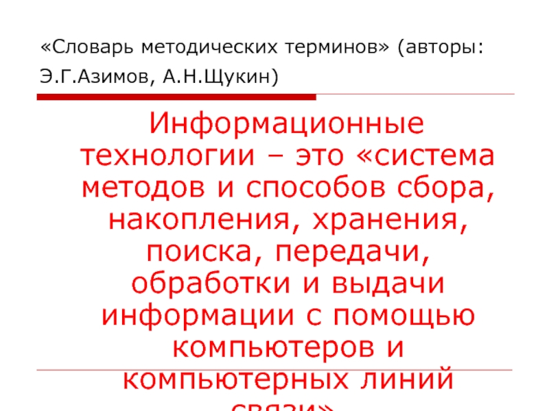 Слайд 4«Словарь методических терминов» (авторы: Э.Г.Азимов, А.Н.Щукин)