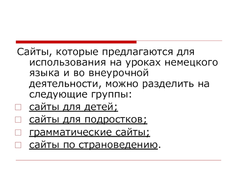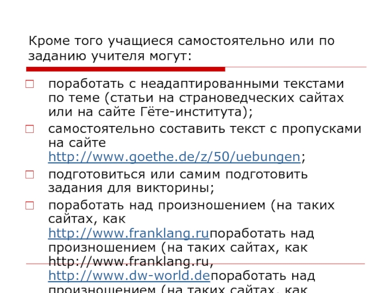 Слайд 9Сайты, которые предлагаются для использования на уроках немецкого языка и во
