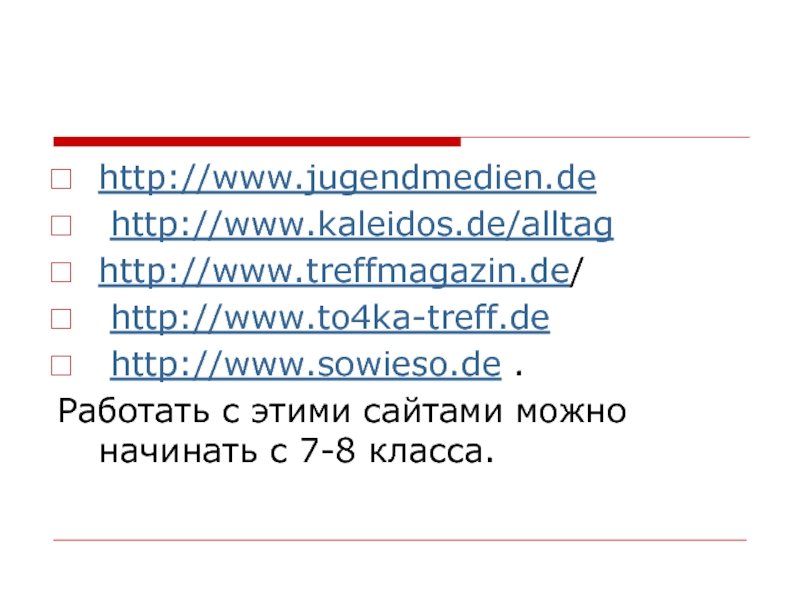 Слайд 20http://www.jugendmedien.de/?m=200708: на этой странице можно найти ссылки на различные сайты или