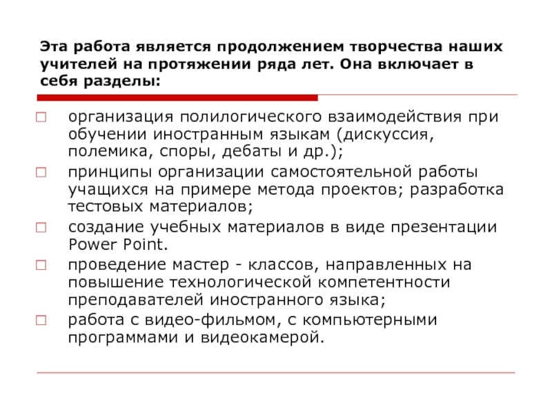 Слайд 3Эта работа является продолжением творчества наших учителей на протяжении ряда лет.