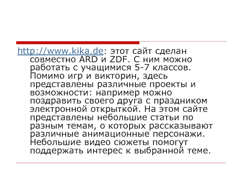 Слайд 14http://www.kika.de: этот сайт сделан совместно ARD и ZDF. С ним можно