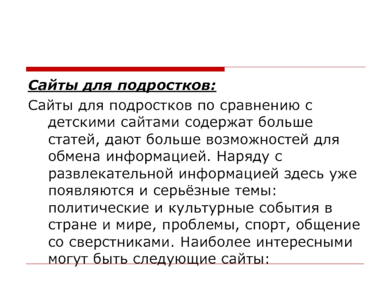 Слайд 15Сайты для подростков: