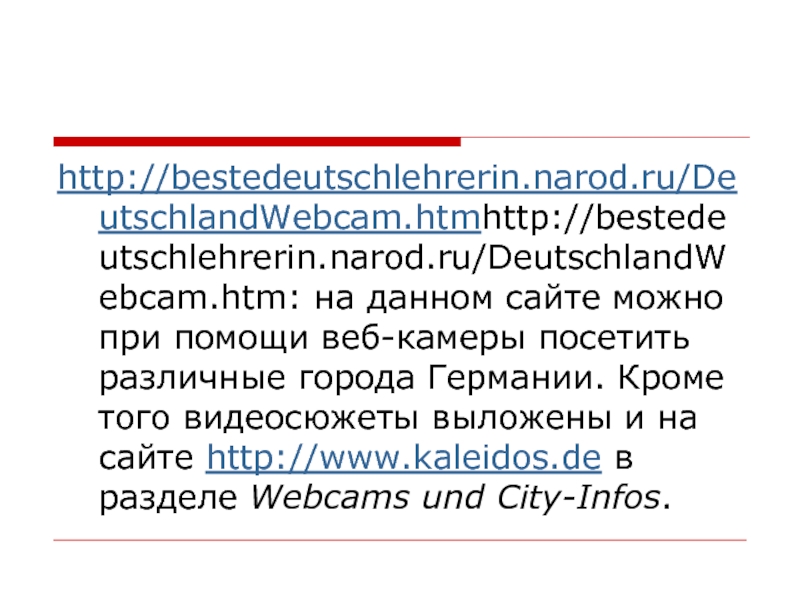 Слайд 32http://bestedeutschlehrerin.narod.ru/DeutschlandWebcam.htmhttp://bestedeutschlehrerin.narod.ru/DeutschlandWebcam.htm: на данном сайте можно при помощи веб-камеры посетить различные города