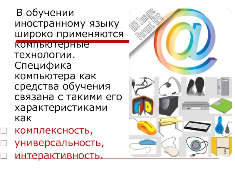 Слайд 2 В обучении иностранному языку широко применяются компьютерные технологии. Специфика